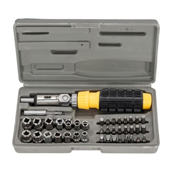 10013 Wkrętak z grzechotką i bitami zestaw 40 elementów, Mega