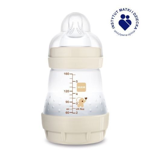 Innowacyjny opatentowany system antykolkowy firmy MAM, z zaworem umieszczonym w dnie butelki, zapobiega tworzeniu się pęcherzyków powietrza i powstrzymuje spienianie płynu, powoduje to równomierny przepływ podczas picia i chroni niemowlę przed połykaniem powietrza.
