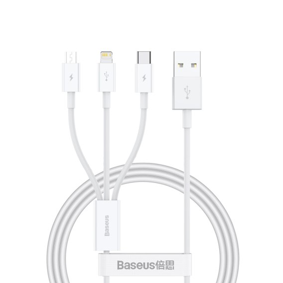 3w1 Kabel przewód Superior Series USB-A - USB-C / iPhone Lightning / micro USB 3.5A 0.5m - biały