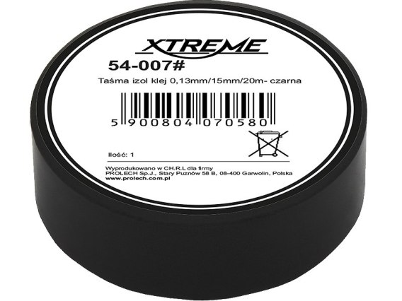 54-007# Taśma izolacyjna klejąca 0,13mm/15mm/20m - czarna