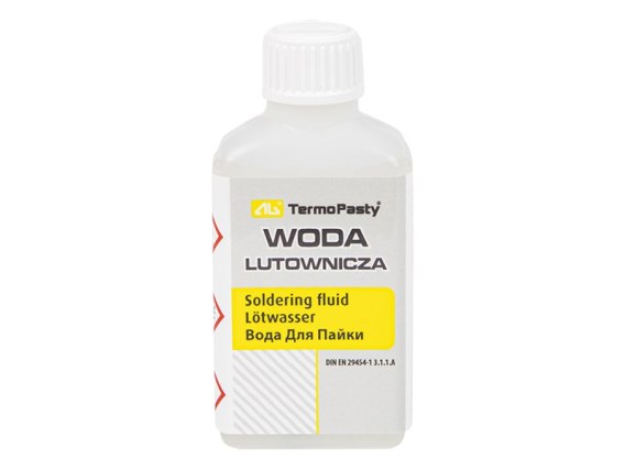 Woda lutowniczato przezroczysta ciecz, będąca wysoko aktywnym płynem, przeznaczonym do lutowania miękkiego ocynkowanych blach oraz czystego cynku.