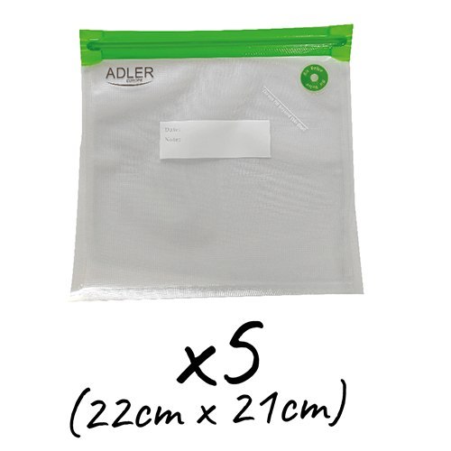 Idealny do przechowywania żywności i przedłużania jej świeżości, zestaw Adler AD 4514.1 zawiera 25 sztuk torebek próżniowych wielokrotnego użytku. Dzięki różnym rozmiarom torebki doskonale nadają się do przechowywania różnych rodzajów produktów, od mięsa po warzywa i przekąski, pomagając zachować ich smak i wartości odżywcze na dłużej.