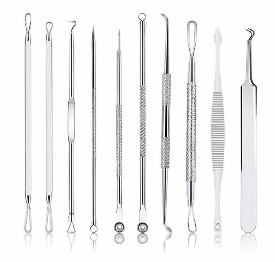 Zestaw 10 obustronnych łyżeczek do bezpiecznego usuwania zaskórników, wągrów i pryszczy. Profesjonalne, pętelkowe łyżeczki przeznaczone są do pracy przy zaskórnikach i innych zanieczyszczeniach twarzy. Znakomicie sprawdzą się do usuwania pryszczy z trudno dostępnych miejsc.