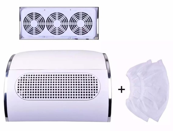 Pochłaniacz pyłu to urządzenie służące utrzymaniu porządku podczas stylizacji paznokci. Charakteryzuje się on wysokim komfortem obsługi oraz funkcjonalnością - wyposażony jest w aż 3 mocne i ciche wiatraki pochłaniające pył oraz specjalne woreczki do zbierania tego pyłu (powstałego podczas zabiegów kosmetycznych).