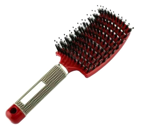 Profilowana szczotka 10-rzędowa. Przedmiot stanowiący niezbędne wyposażenie każdego profesjonalnego salonu fryzjerskiego oraz domowej kosmetyczki. Rękojeść wykonana z gumowanego tworzywa. Posiada szeroko osadzone i sprężyste włosie oraz elastyczne kolce, które ułatwiają rozczesywanie splątanych włosów. Charakterystyczna głownia wygięta w dwóch płaszczyznach dodatkowo wspomaga rozczesywanie. Rączka posiada magnes oraz specjalny otwór, które umożliwiają wygodne zawieszenie szczotki.