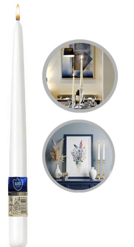 AURA Świeca Stołowa Stożkowa Biała 7h 1 szt. s30-1-090