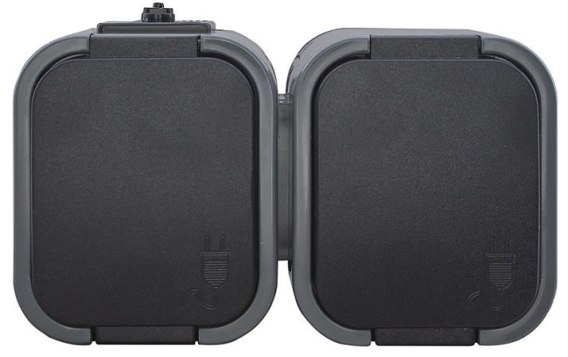 B2 GNIAZDO PODWÓJNE N/T Z/U IP54 SZARO/CZARNE