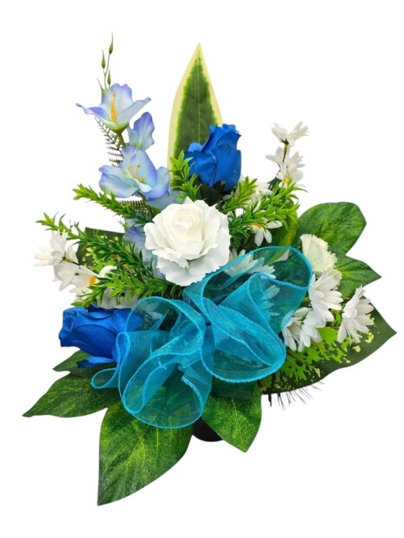 BIAŁO NIEBIESKI BUKIET WKŁAD DO WAZONU KWIATY NA CMENTARZ GRÓB POMNIK