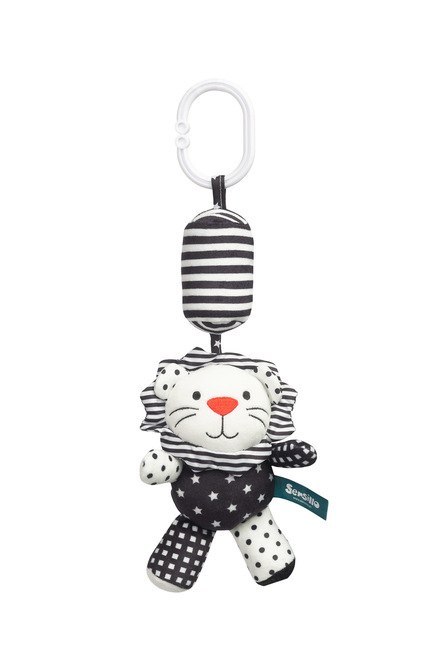 Zawieszka do wózka dla niemowląt, wyróżniająca się kontrastującymi kolorami czerni i bieli, została zaprojektowana z myślą o stymulacji wzrokowej i rozwoju sensorycznym maluszka. Jej prosty, ale niezwykle funkcjonalny design przyciąga uwagę dziecka, a zróżnicowane faktury i kształty zapewniają angażującą zabawę.