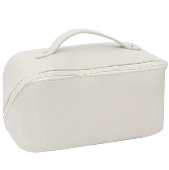 Niezwykle praktyczna kosmetyczka podróżna. Wyposażona w wiele przegródek o zróżnicowanej wielkości i przeznaczeniu. Pojemna komora główna zapinana na zamek błyskawiczny. Dodatkowe kieszenie i schowki ułatwią ukrycie ogromnej ilości kosmetyków. Organizer został wykonany z solidnego materiału (ekoskóra), która zabezpiecza zawartość przed przypadkowym uszkodzeniem. Wygodna rączka ułatwiająca przenoszenie kosmetyczki.