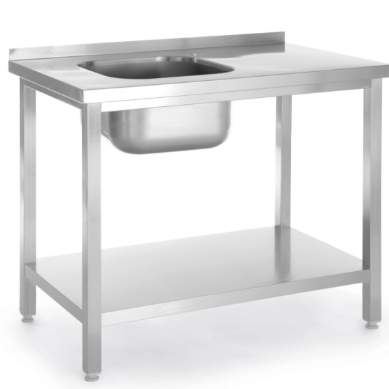 Stół ze zlewem marki Hendi sprawdzi się w restauracjach, barach, hotelach, szpitalach czy laboratoriach. Zlew umieszczony jest po LEWEJ stronie stołu Jego wytrzymała konstrukcja wykonana została ze stali nierdzewnej AISI 430. Przedmiot posiadazlew, półkę, otwory na syfon i baterię. Zlew tłoczony został z jednego arkusza stali i wspawany bezszczelinowo w blat. Komora zlewu ma wymiary 400 x 400 x (H) 250 mm. Standardowy otwór w dnie do syfonu wynosi 50 mm, miejsce na zamocowanie baterii 30 mm. Rant zabezpieczający ścianę przed zabrudzeniem ma szer. 40 mm. Półka nie ma możliwości regulacji - wysokość od podłogi do jej dolnej krawędzi wynosi 160 mm. Nogi wykonane zostały z profili 40 x 40 mm. Skręcana konstrukcja mebla umożliwia łatwe jego złożenie, magazynowanie i przewożenie.Stopki są regulowane +25/-5 mm. Dopuszczalne obciążenie blatu wynosi ok. 70 kg/m2.