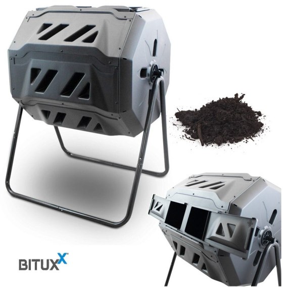 Bębnowy Kompostownik do Ogrodu Dwu komorowy 160l Obrotowy Bituxx