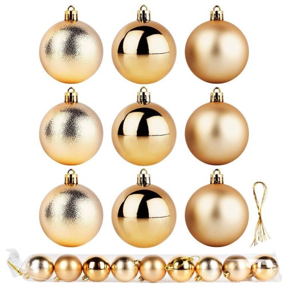 Zestaw 9 sztuk nietłukących bombek. W zestawie: 3x złote bombki błyszczące, 3x złote bombki matowe, 3x złote bombki strukturalne. Bombki prezentują się bardzo efektownie. Niezbędne do dekoracji choinek, kompozycji świątecznych i stroików. Będą stanowić wyjątkową ozdobę na choince. Z ich pomocą możemy w modnym stylu ubrać swoje drzewko świąteczne.