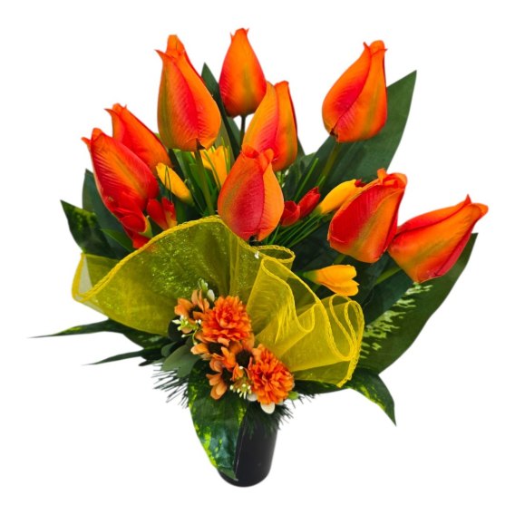 Bukiet flakon wiosenny stroik na cmentarz kompozycja kwiatowa tulipany