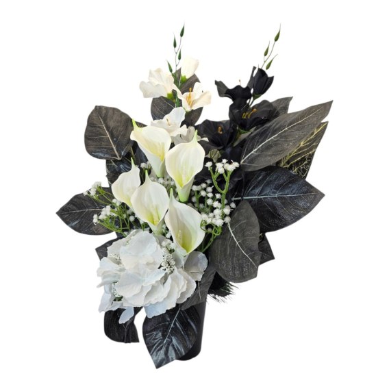 💚Stroik cechuje się unikalną kompozycją sztucznych kwiatów. Starannie dobrane kwiaty są niezwykle realistyczne, dodając wiązance autentyczności i podkreślając jej uroczysty charakter.
