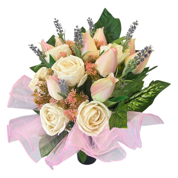 Bukiet stroik na cmentarz tulipany róże wiosenna kompozycja na grób