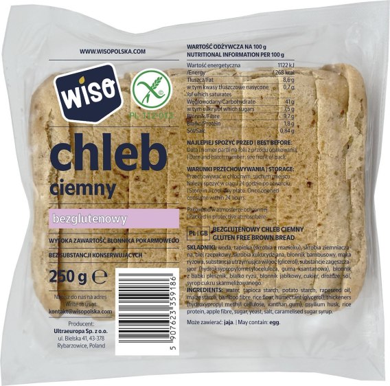 Kształt klasycznego tosta. Smak delikatny z nutką drożdży. Miękisz zwarty beżowo - brązowy. Wspaniały jako baza kanapki z rozmaitymi dodatkami zarówno na słodko jak i wytrawnie. Smaczny tak samo w wersji na ciepło jak i na zimno. Pakowano w atmosferze ochronnej. Wysoka zawartość błonnika pokarmowego.