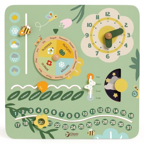 CLASSIC WORLD Drewniana Tablica Manipulacyjna "Mój pierwszy kalendarz" Zegar dla Dzieci
