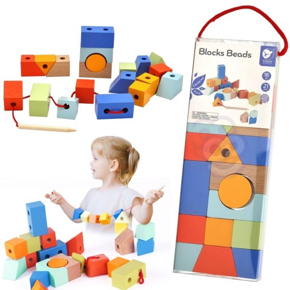 CLASSIC WORLD Drewniane Klocki do Nawlekania Figury Geometryczne 21 el.