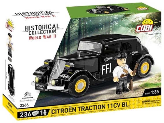 Samochód Citroen Traction 11CV BL został starannie odtworzony z klocków konstrukcyjnych COBI. Auto uzupełnia bogatą kolekcję historycznych pojazdów wydanych w modelarskiej skali 1:35.
