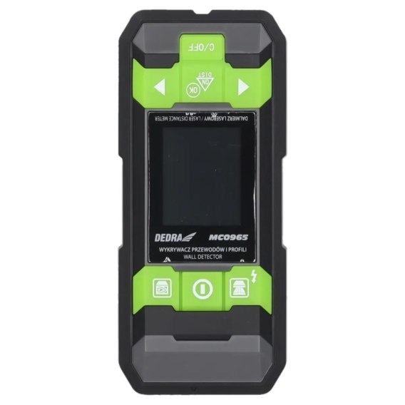 Wykrywacz przewodów i profili DEDRA MC0965 pozwala na wykrycie elementów i profili metalowych, przewodów elektrycznych bez i pod napięciem przemiennym oraz drewna, a także inne przedmioty takie jak żelazo, beton, szkło, aluminium itp.. Pomaga tym samym uzupełnić dokumentację techniczną budynków. Dodatkowo wykrywacz został wyposażony w funkcję dalmierza o zasięgu pracy 0,05-40m, co jest dużym udogodnieniem, gdyż zamiast dwóch urządzeń, mamy jedno
