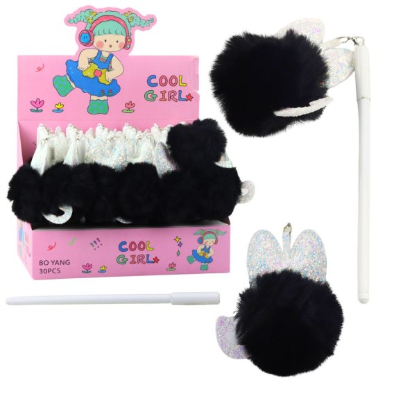Długopis żelowy z pomponem ? czarny z uszkami