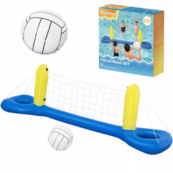 Zestaw do siatkówki firmy Bestway to idealne sposób na rozrywkę w basenie zarówno dla dzieci jak i dla dorosłych. Zestaw zawiera nadmuchiwaną podstawę z siatką i nadmuchiwaną piłkę, które swobodnie unoszą się na wodzie. Intensywne kolory zachęcają do zabawy i wyróżniają się. Nadmuchiwana wodna siatkówka zapewni świetną zabawę dla całej rodziny lub grona przyjaciół. Sprawdzi się zarówno w basenie jak i nad morzem czy jeziorem.