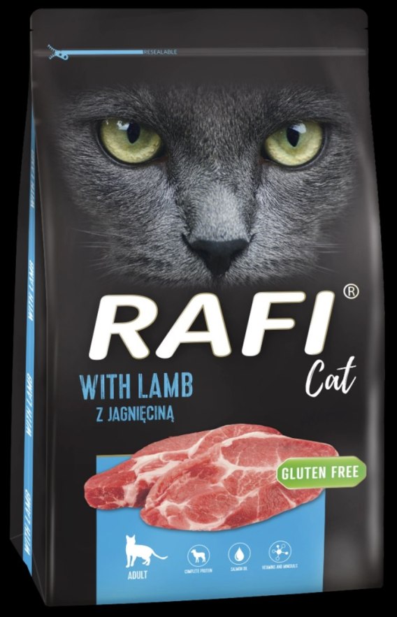 Sucha karma dla kota Rafi Cat z jagnięciną Pełnoporcjowa sucha karma dla dorosłych kotów Doskonale zbilansowana dieta to podstawa dobrego samopoczucia czworonogów.