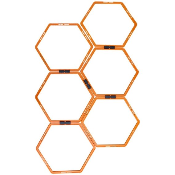 W zestawie: 6x pomarańczowych sześciokątów, 5x czarnych łączeń
