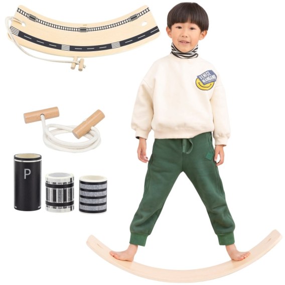 ✔️ Zadaniem dziecka jest balansowanie na desce, by jednocześnie zachować równowagę.