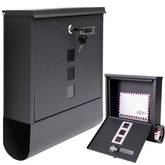 Duże, otwierające się do przodu drzwiczki zamykane są na zamek z dźwignią zamykającą i otwierają się na tyle szeroko, aby pozwolić na łatwy dostęp do wnętrza skrzynki na listy, a tym samym sprawne wyjęcie z niej nawet większej korespondencji. Klasyczna kolorystyka oraz ciekawy nowoczesny styl skrzynki dobrze komponują się z każdego rodzaju powierzchnią, bez względu na jej strukturę oraz barwę.