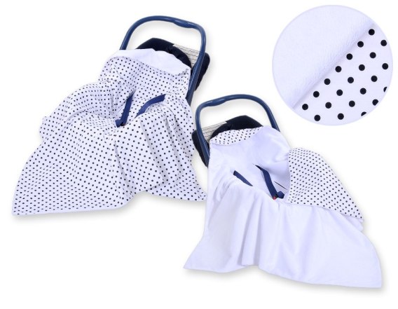 Duży otulacz dla niemowląt do fotelika nosidełka wózka dwustronny - Czarne grochy na białym tle