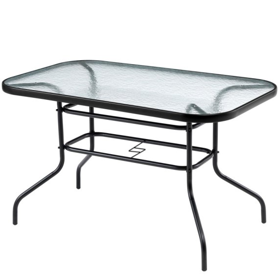 Wykonany z solidnego szkła hartowanego w kształcie prostokąta. Jego ranty są zaokrąglone, co nie tylko podnosi walory estetyczne stołu, ale też wpływa na bezpieczeństwo jego użytkowania.