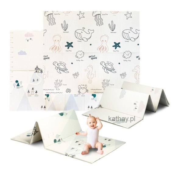 Dwustronna składana kolorowa edukacyjna piankowa mata dziecięca 180x200 cm - wodny świat