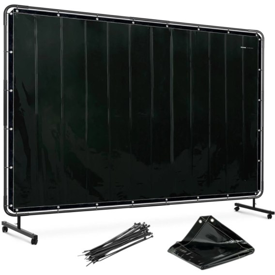 Ekran kurtyna spawalnicza ochronna z ramą na kółkach 240 x 180 cm - czarna