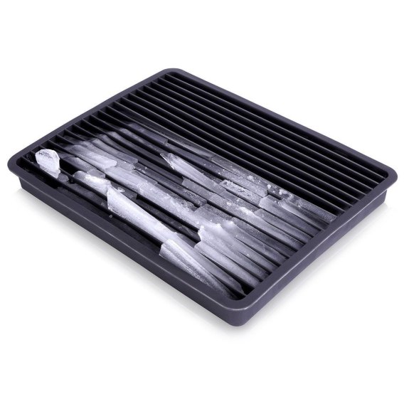 Elastyczna forma do przygotowania kruszonego lodu. Kruszony lód pozwoli na fantazyjne przygotowanie drinków, napojów, ale również wody. W foremce możemy zamrozić również soki owocowe oraz sorbety otrzymując zamrożone napoje w formie pałeczek lodu. Wyprodukowano zgodnie z europejskimi standardami.