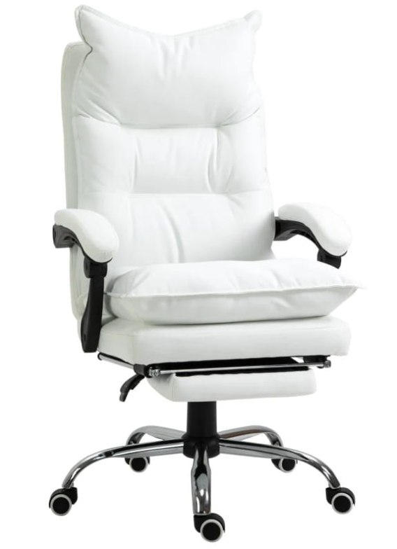 Fotel Biurowy Skóra Eko Z Podnóżkiem Biały
