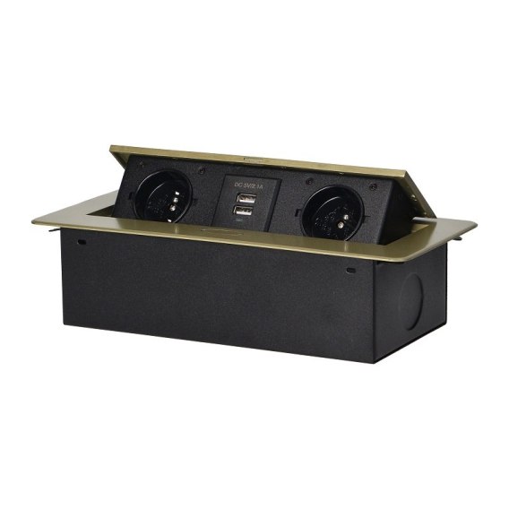 GNIAZDO WPUSZCZANE W BLAT 2X2P+Z, 2XUSB PŁASKI RANT MOSIĄDZ