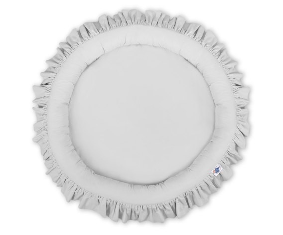Oryginalne gniazdko z falbanką. Funkcjonalne i praktyczne. Doskonale sprawdzi się jako mini basenik, mata do zabawy lub "podłoga" baldachimu. Szerokie, okrągłe i mięciutkie ścianki zapewnią bezpieczną i udaną zabawę dla każdego malucha. Gniazdko może być używane już od pierwszych dni życia jako wygodny i bezpieczny kokon niemowlęcy a później jako przytulne miejsce do zabawy. Pokrowiec wykonany jest z tkaniny 100% bawełnianej, posiadającej atest Okotex. Boki gniazdka wypełnione są atestowanym włóknem Eco Fillball – mięciutkim włóknem uformowanym w malutkie kuleczki. Dzięki specjalnej technologii produkcji kuleczki te są puszyste i sprężyste, a przy tym w dotyku są miękkie i delikatne jak puch, zapewniają odpowiednią cyrkulację powietrza. Dno gniazdka, to specjalna wkładka wykonana z nowoczesnego antyalergicznego atestowanego surowca. Gniazdko łatwo utrzymać w czystości, pokrowiec jest rozbieralny - można prać w pralce w 30 stopniach.