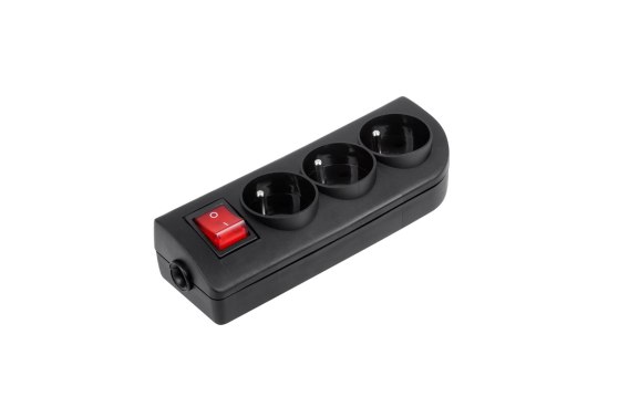 Gniazdo przedłużacza x 3 z uziemieniem i wyłącznikiem czarne GN-30W-2