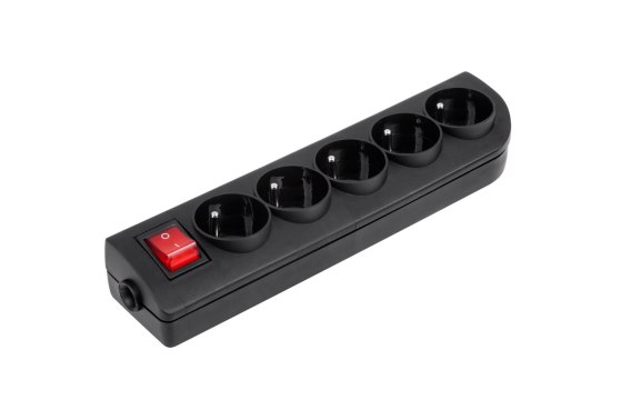 Gniazdo przedłużacza x 5 z uziemieniem i wyłącznikiem czarne GN-50W-2