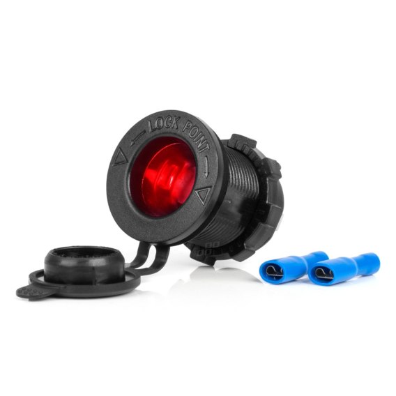 Gniazdo zasilania dodatkowe do zabudowy z czerwonym podświetleniem 12v 24v amio-04219