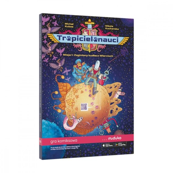 To nie wszystko! Chwyć za telefon, a właściwie Tropibota - telefon z aplikacją Skanuj kody QR z komiksu, tłumacz magiczne znaki (runy), a otrzymasz dostęp do informacji na wagę kosmicznego złota! Poznasz historię planety i jej mieszkańców. Odwiedzisz miejsca, gdzie toczy się życie, takie jak centrum szkoleniowe tropicielonautów, szpital czy mleczarnia. Możesz też zajrzeć do kompendium wiedzy, dzięki czemu twoja misja będzie jeszcze ciekawsza, a Ty unikniesz niebezpieczeństw i podejmiesz lepsze, świadome wybory.