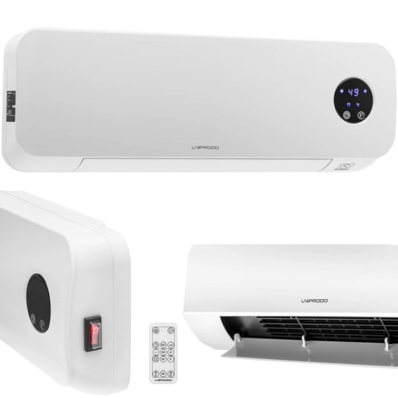 Grzejnik ceramiczny marki Uniprodo sprawdzi się do krótkotrwałego ogrzewania biura, domku letniskowego, łazienki czy warsztatu. Temperatura regulowana jest w zakresie 10-49°C. Pilot umożliwia sterowanie sprzętem z odległości do 6 m. Wbudowany timer pozwala na włączenie lub wyłączenie automatyczne w określonym zakresie do 12 godzin. Wszystkie ustawione wartości widoczne są na wyraźnym wyświetlaczu LED. Funkcja wykrywania otwartego okna pozwala na wyłączenie automatyczne urządzenia z powodu różnicy temperatur. Bezpieczeństwo sprzętu zapewnia ochrona przed przegrzaniem. Dołączone akcesoria umożliwiają łatwy montaż na ścianie.