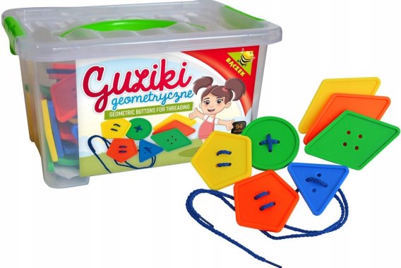 zachęcą Twoje dziecko do wielu kreatywnych zabaw: do nawlekania, układania, grupowania, sortowania i przesypywania,guziki występują w 4 kolorach o różnej ilości dziurek, różnych kształtach i różnej wielkości,guziki świetnie sprawdzą się również podczas nauki kolorów,guziki genialnie wpływają na sprawności dłoni i palców, usprawniają precyzję ruchów, ćwiczą koncentrację oraz pobudzają kreatywność dziecka.