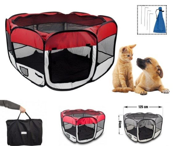 Hodowlana Zagroda dla zwierząt szczeniaków kociaków Kojec Materiałowy mobilny Czerwony