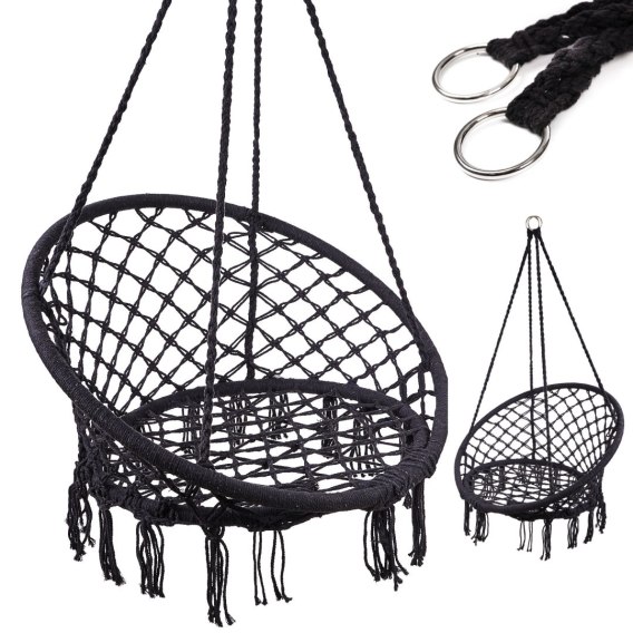 Huśtawka LUARO fotel bocianie gniazdo czarne 80cm 150kg