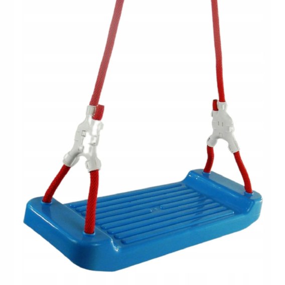 Huśtawka opiera się na prostej i solidnej konstrukcji w kształcie prostokąta. Posiada grube liny oraz wytrzymałe metalowe kółeczka umożliwiające stabilne i bezpieczne zawieszenie. Dodatkowo posiada regulację wysokości lin dzięki czemu można dostosować huśtawkę do wzrostu dziecka.