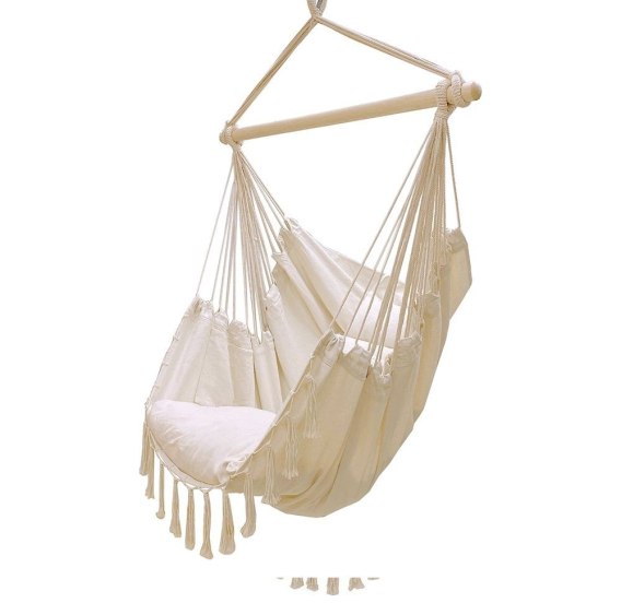 Huśtawka ogrodowa, fotel wiszący brazylijski z poduszkami 130kg beżowy