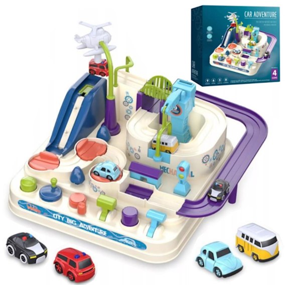 Interaktywny Tor Przeszkód Samochodowy z 4 autkami i helikopterem - idealny sposób na rozwój dziecka poprzez zabawę!